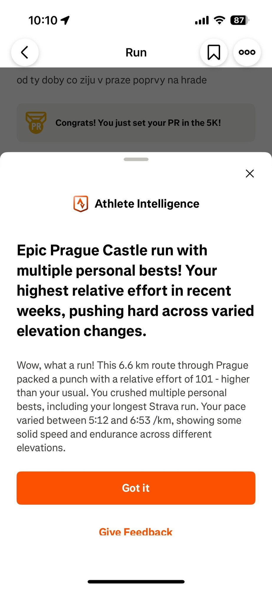 Příklad funkce v appce Strava